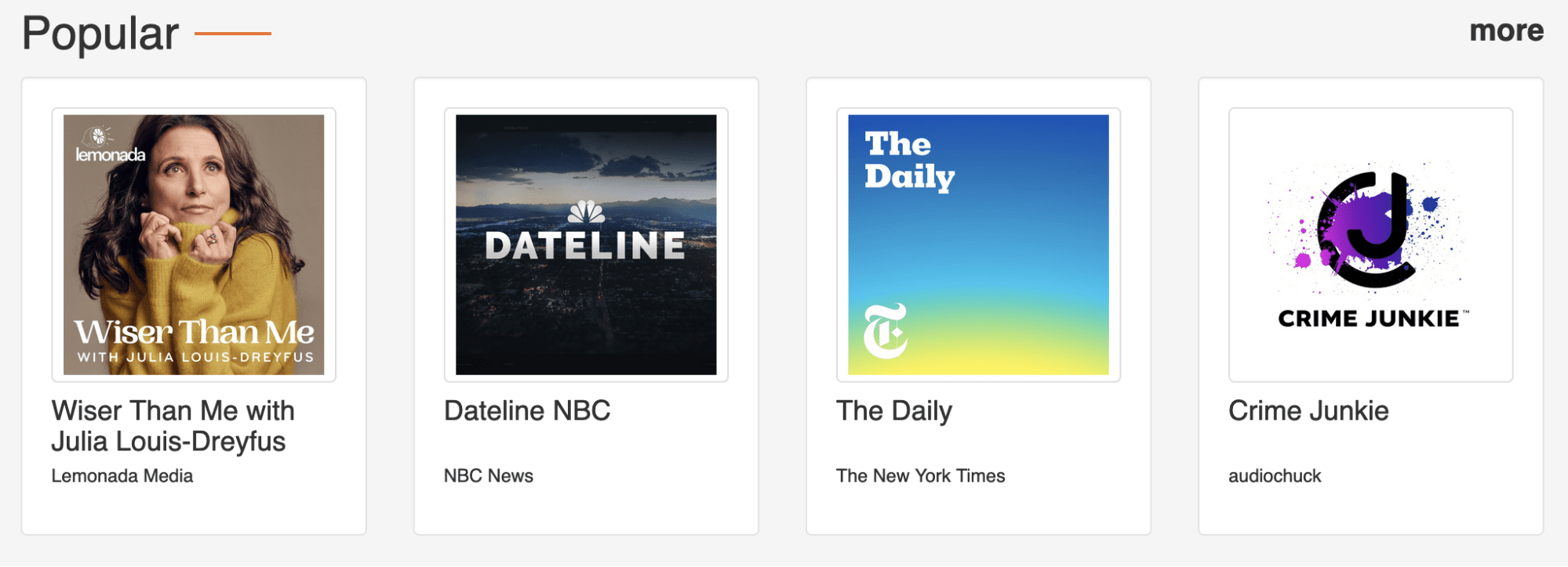 It’s a marketing one-stop-shop that Twenty Thousand Hertz uses wonderfully. They’re a podcast that focuses on the stories behind recognizable sounds, which is showcased beautifully on their website. They use simple yet flashy artwork to highlight different sounds on their main page, which gives audiences an idea of what their podcast is about while staying on-brand.